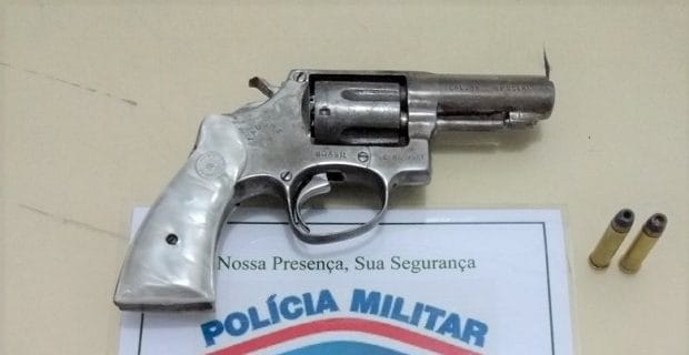 Na abordagem foi encontrado com o adolescente um revólver calibre 38, com duas munições, ele já havia sido apreendido a pouco tempo portando um simulacro de arma de fogo.