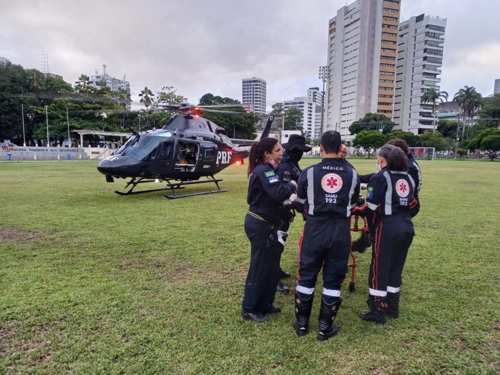 Diante da situação, foi acionado o resgate aeromédico. A vítima foi transportada por helicóptero até o Campo do Derby, no Recife, de onde seguiu em ambulância do SAMU até o Hospital da Restauração.