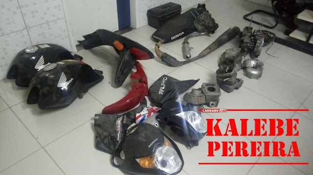 Durante a noite desta quinta-feira (10), a equipe do choque da Policia Militar do 1º biesp, chegaram até a residência do acusado de nome Edson Elter Domingos dos Santos, de 21 anos de idade, que reside na rua Dr. Mario Madeiros, no bairro das Rendeiras em Caruaru, ao chegar no local informado, os Policiais Militares , localizaram varias peças de motos e duas motos que estavam sendo depenadas , sendo uma Honda XRE 300 de cor vermelha de placa PEF 6023 e uma Honda 125 de cor preta com a numeração do chassis adulterado e a mesma sem a placa .