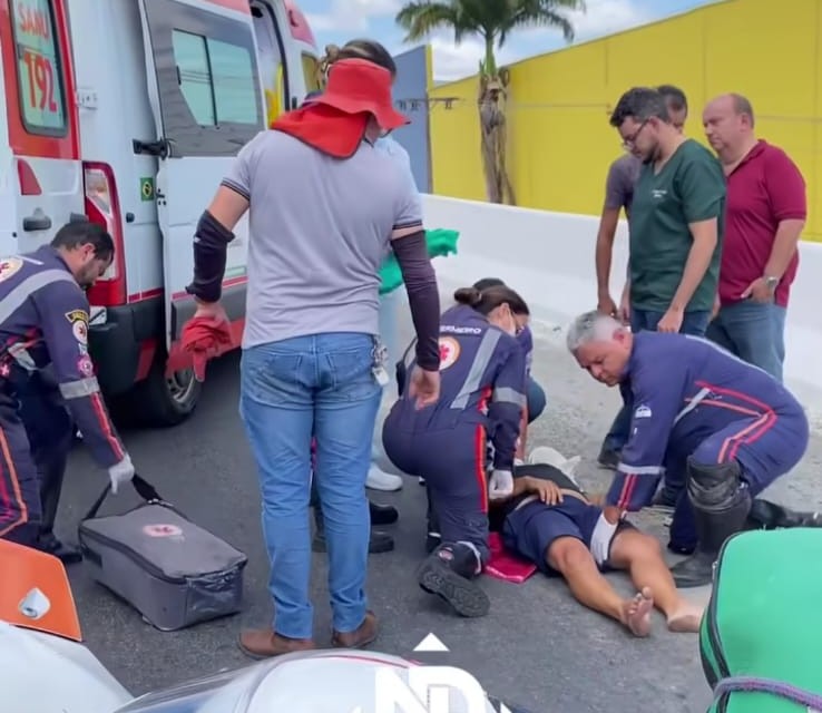Equipes do SAMU realizaram os primeiros atendimentos ainda na via. A vítima apresentava escoriações na cabeça e foi encaminhada para uma unidade de saúde. Pessoas que passavam pelo local ajudaram o homem até a chegada do socorro.