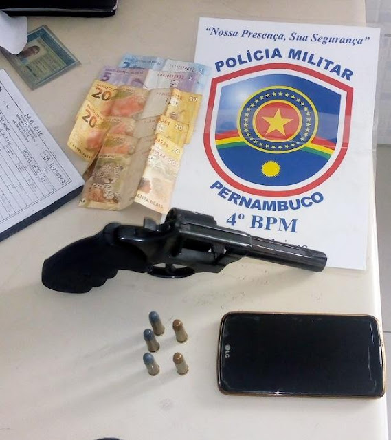 MATÉRIAL APREENDIDO: um revólver calibre 38 tauros com 5 munições intactas de numeração: IJ224656