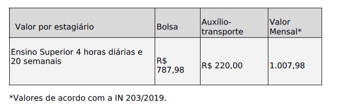 De acordo com o edital, a jornada será de 4 horas diárias e 20 horas semanais, com bolsa