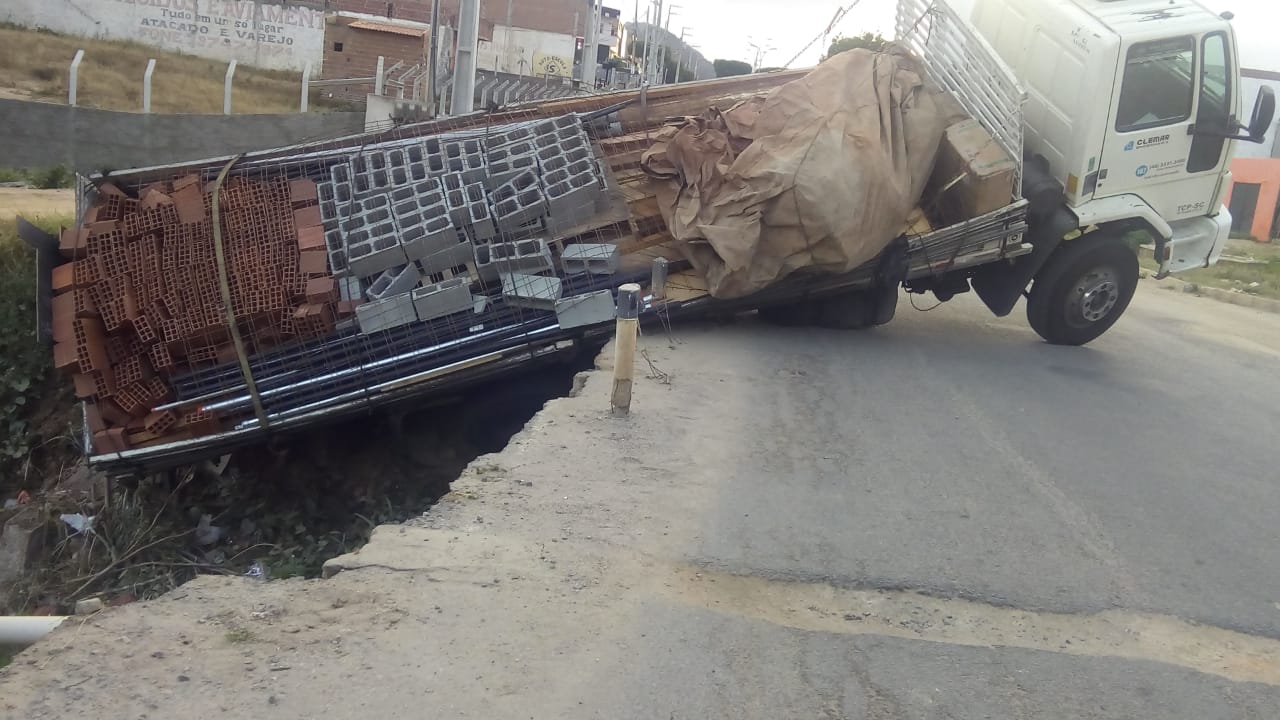 Caminhao caiu em uma das Crateras
