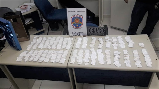 Policiais Militares da 11ª CIPM e 8ª DENARC, montaram pontos de monitoramento estratégicos na chegada de Lajedo, quando nas imediações da lombada eletrônica visualizaram o ônibus que estava transportando a droga, os passageiros começaram a descer e um deles identificado como Ronaldo Bernardino da Silva, desceu com uma caixa de som e repassou para seu irmão identificado como Uglebeson Izidio Fernandes, ele ao perceber a aproximação dos policiais tentou se livrar da caixa de som onde estavam escondidos quatro invólucros com envelopes de cocaína.
