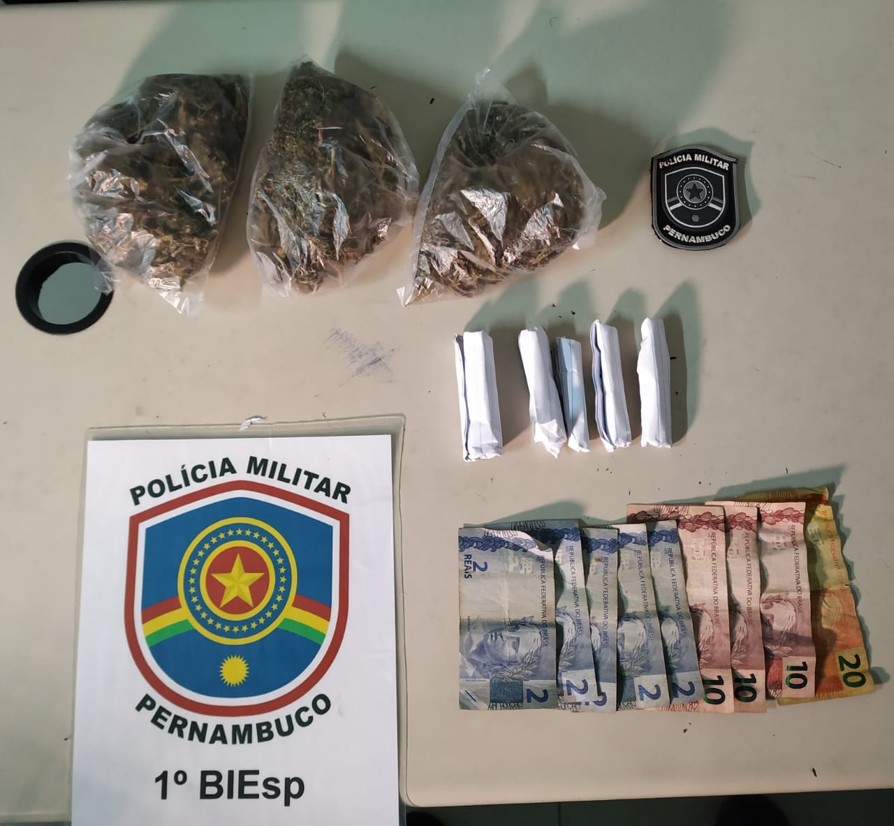 Na noite desta quarta-feira (27), através de informações obtidas pelo Sargento Djaci do 24º BPM, os soldados Maxmyllyan, Targino, Miranda, Dorgival, Joanes, Espindola e Marques Silva com o apoio dos soldados Vanine, Cavalcante e P. Pontes do Canil, todos do 1º BIEsp, foram até o bairro Vila Encantus, onde estava ocorrendo tráfico de drogas, ao chegarem no local a mãe de um menor foi indagada pelo efetivo sobre o ilícito, e em seguida o efetivo visualizou o adolescente de 15 anos jogando a droga por trás da casa.
