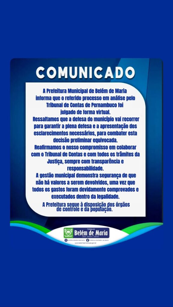A prefeitura afirmou, em nota, que o julgamento foi virtual, classificou a decisão como “equivocada” e informou que vai recorrer, garantindo que todos os gastos foram legais e devidamente comprovados.